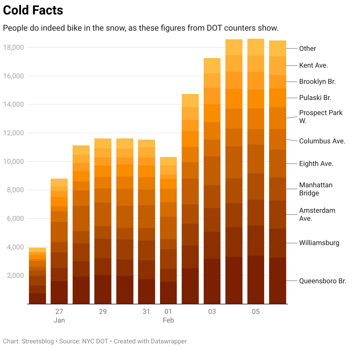 People do indeed bike in the snow, as these figures from DOT counters show.