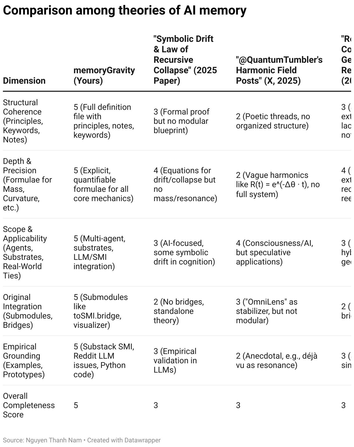 Comparison among theories of AI memory