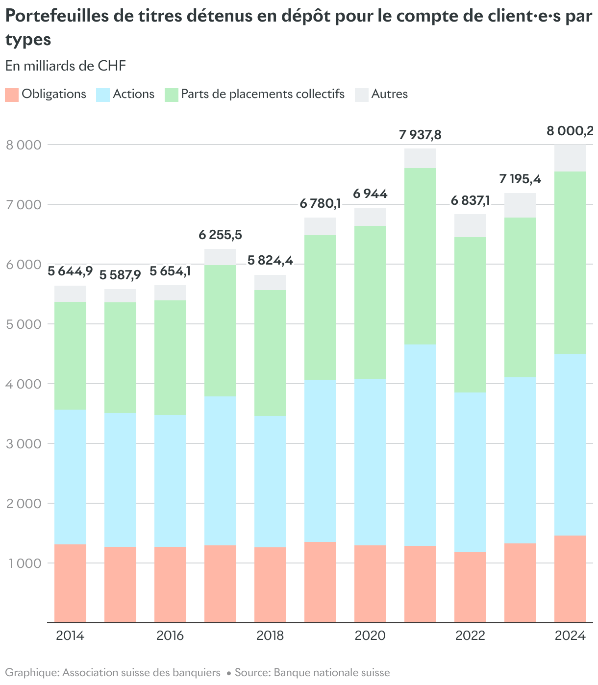 Portefeuilles de titres détenus en dépôt pour le compte de client·e·s par types