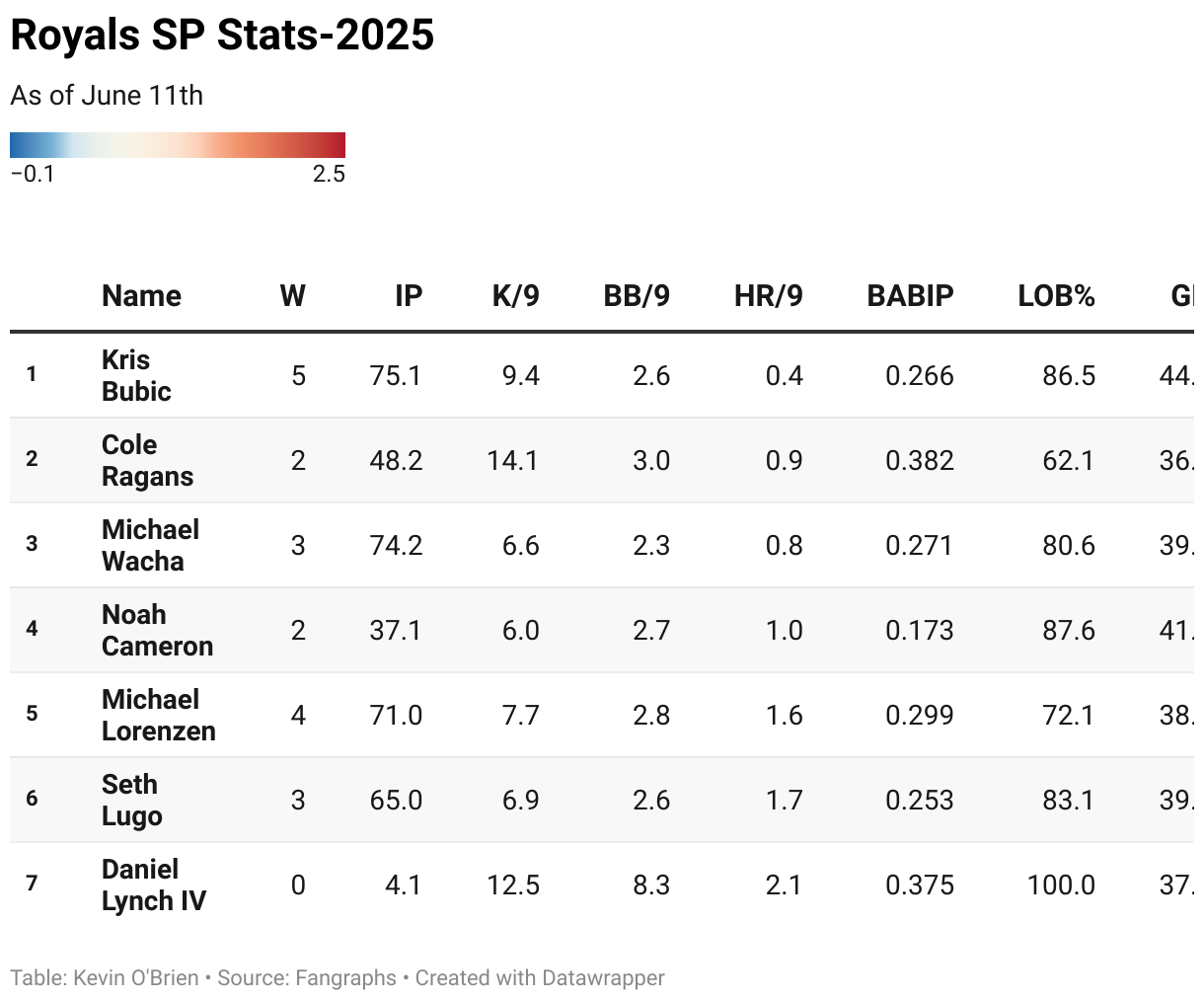 Royals SP Stats-2025