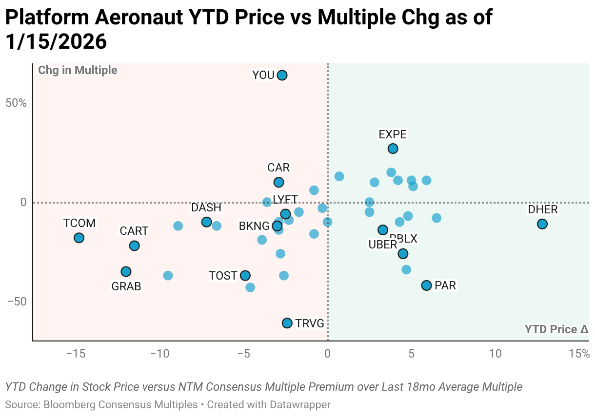 Platform Aeronaut YTD Price vs Multiple Chg as of 1/15/2026