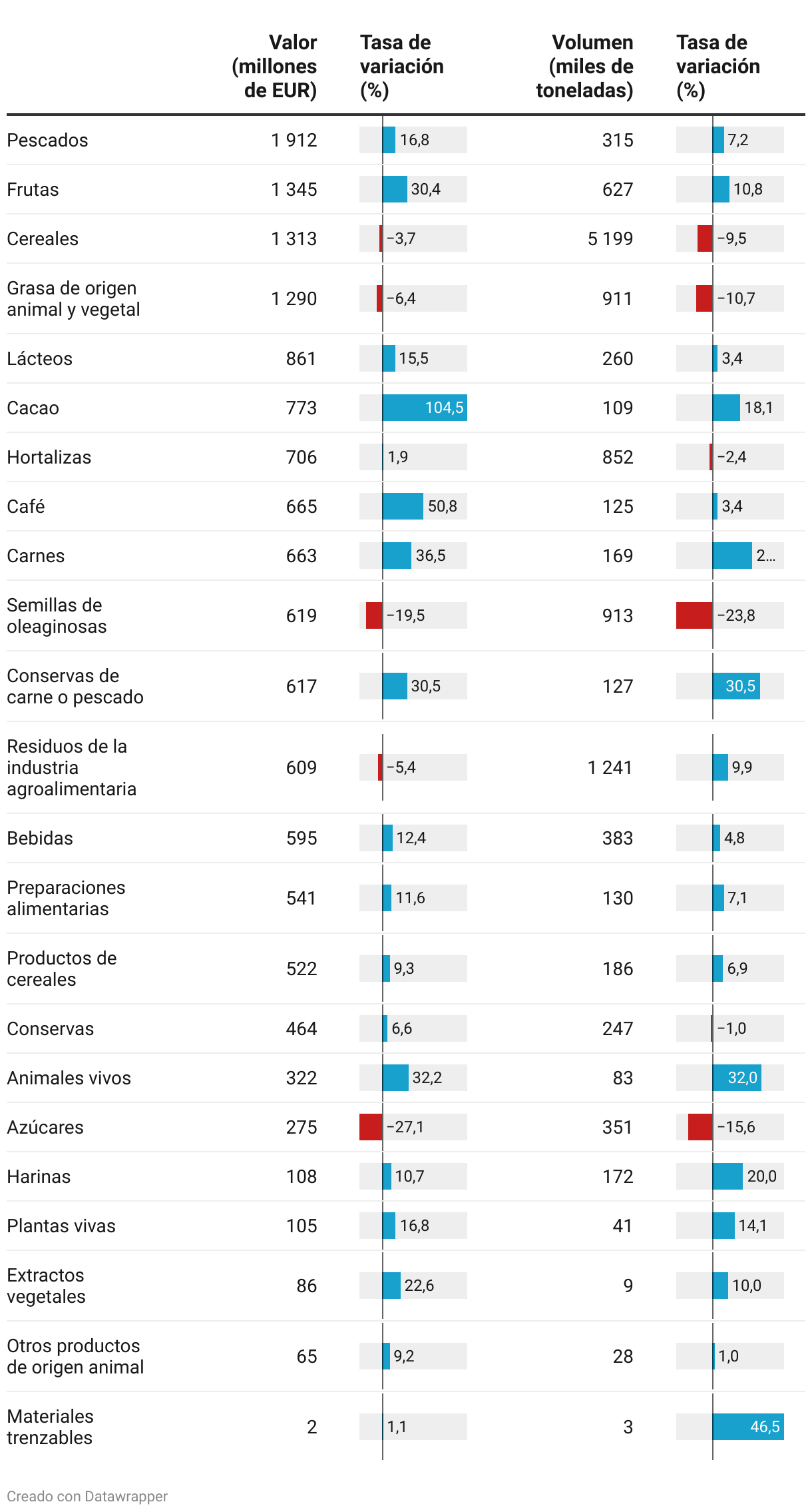 Evolución de las importaciones agroalimentarias españolas por producto. Enero-Marzo de 2025