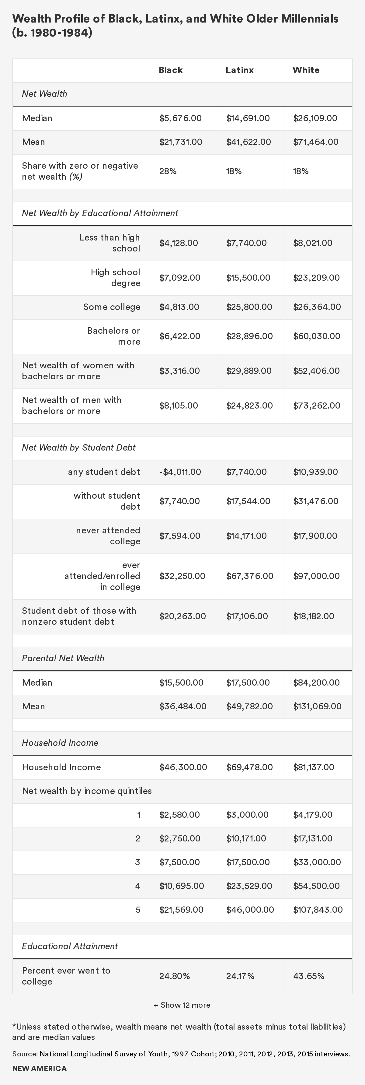 Wealth Profile of Black, Latinx, and White Older Millennials (b. 1980-1984)