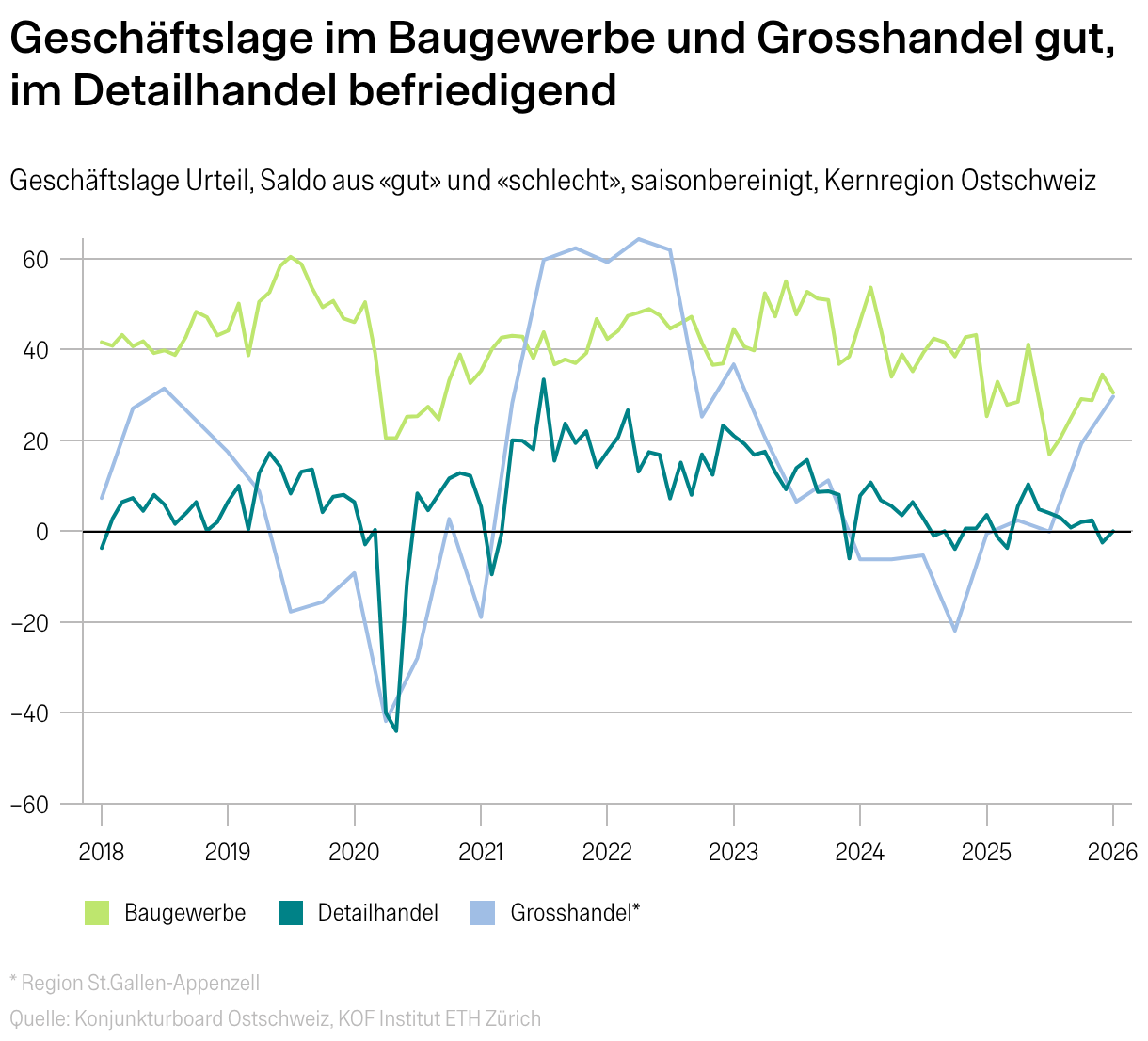 Geschäftslage Urteil, Saldo aus «gut» und «schlecht», saisonbereinigt, Kernregion Ostschweiz