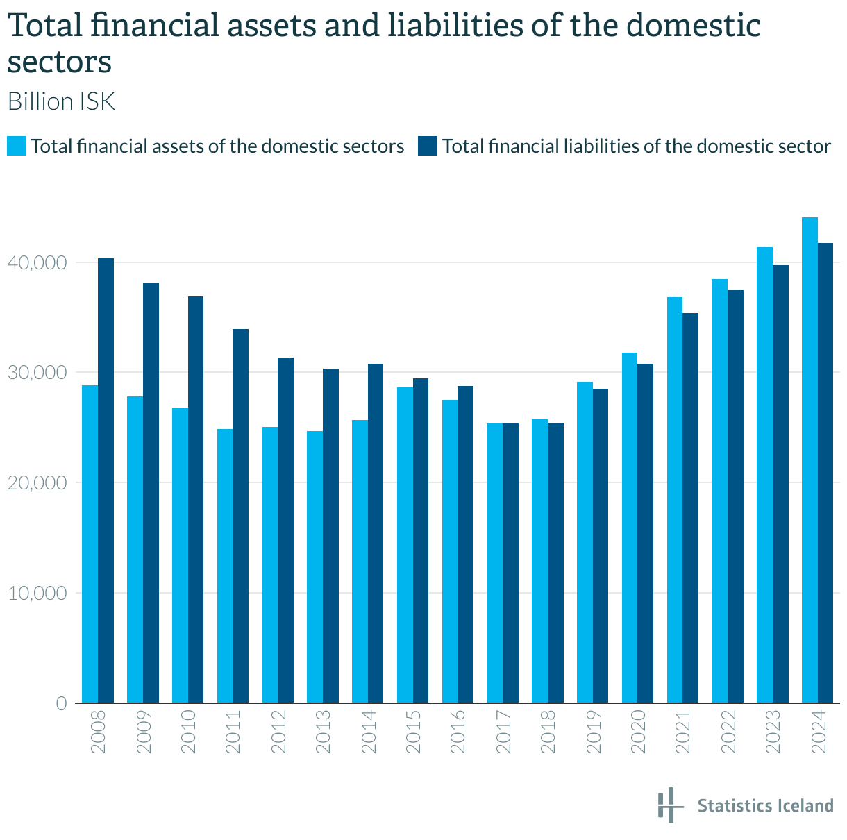 Total financial assets and liabilities of the domestic sectors