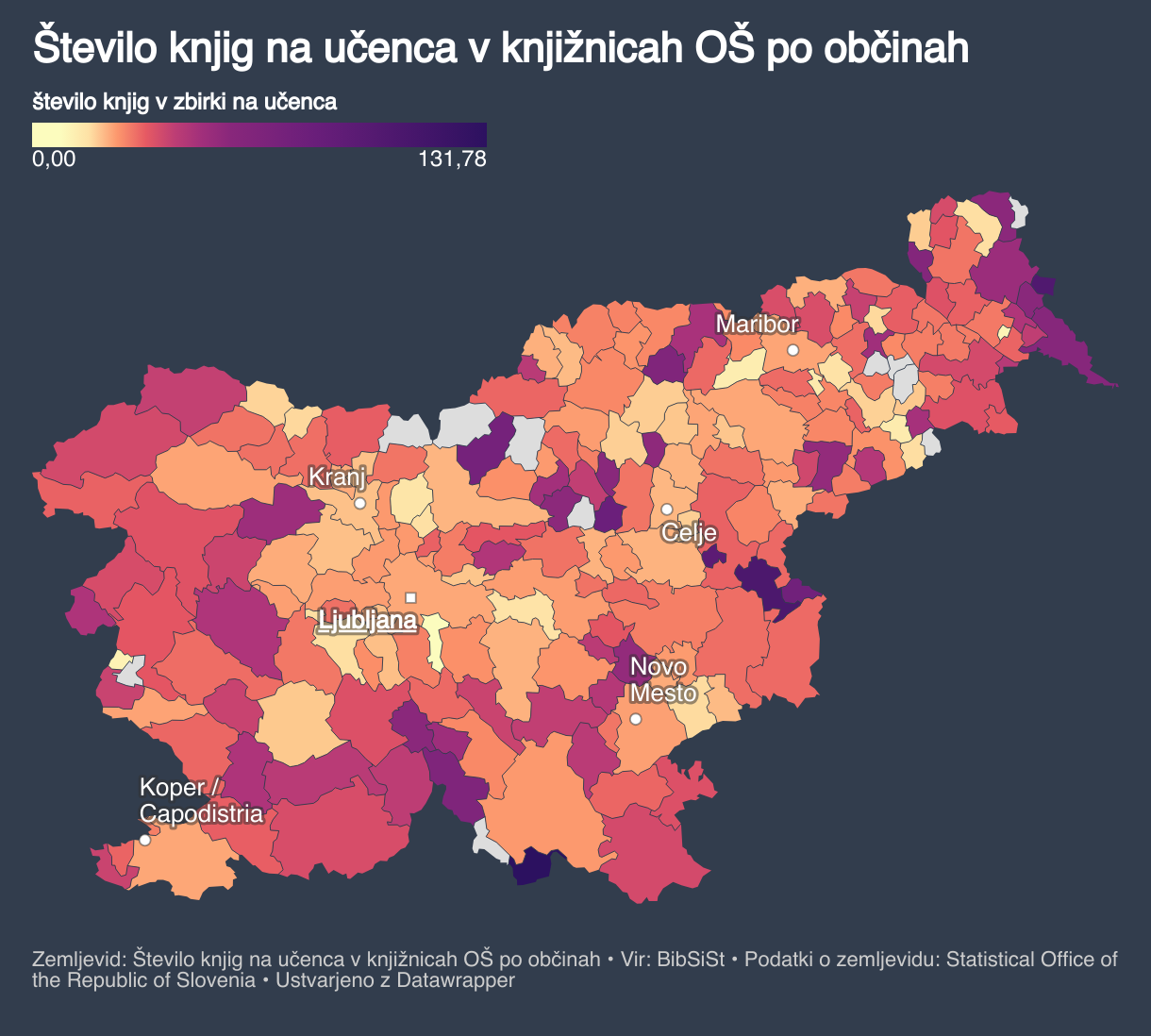 Število knjig na učenca v knjižnicah OŠ po občinah