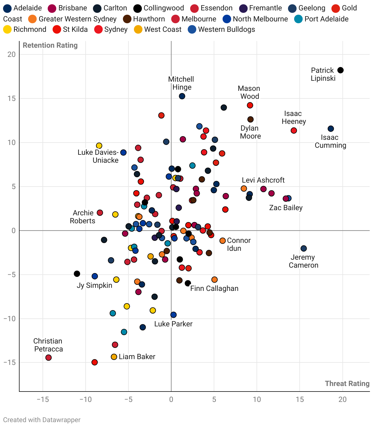Threat and retention ratings, most frequent quartile of kickers in 2025