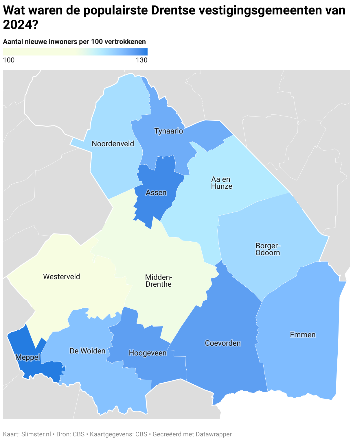 Wat waren de populairste Drentse vestigingsgemeenten van 2024?