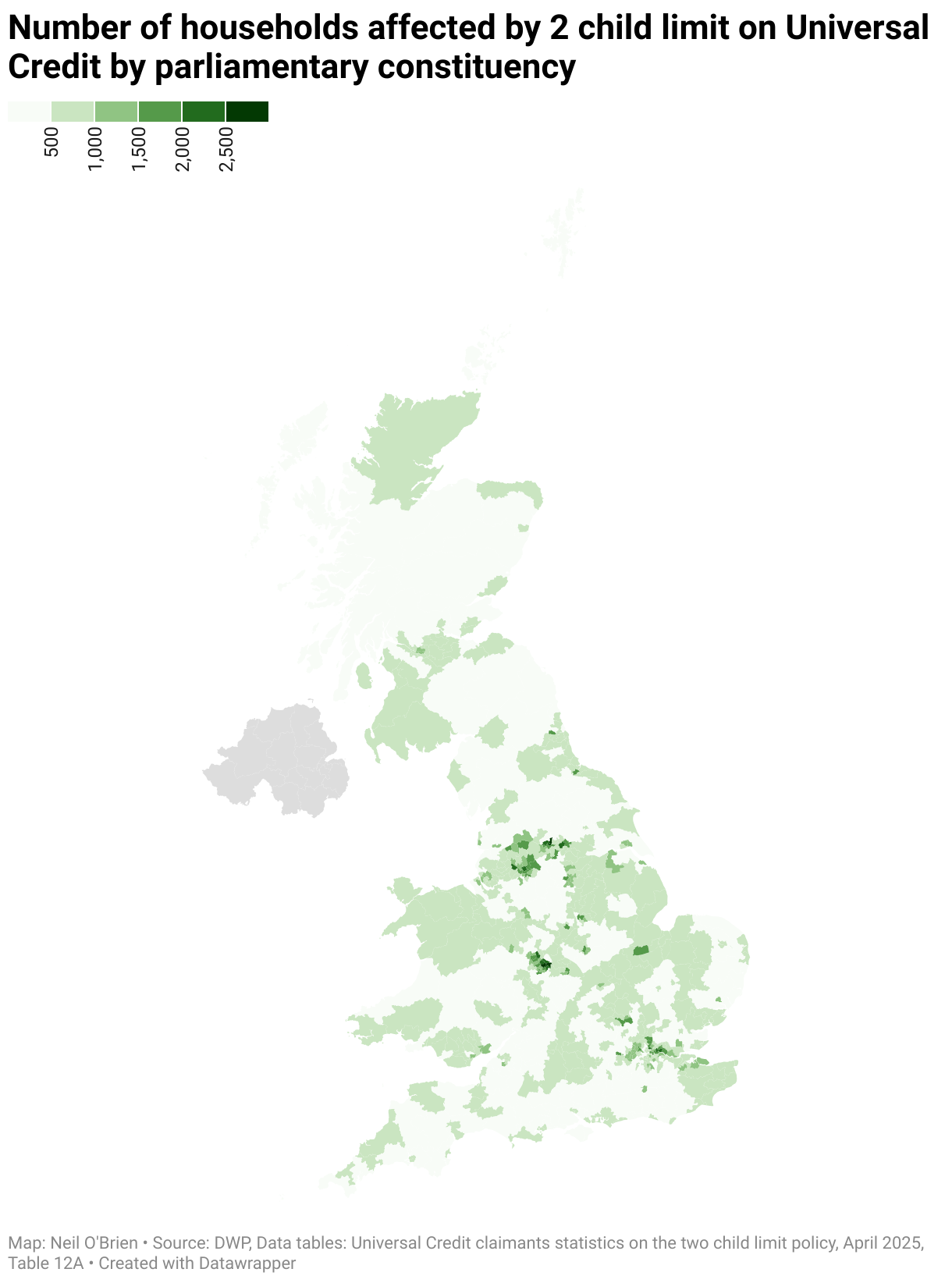 Number of households affected by 2 child limit on Universal Credit by parliamentary constituency