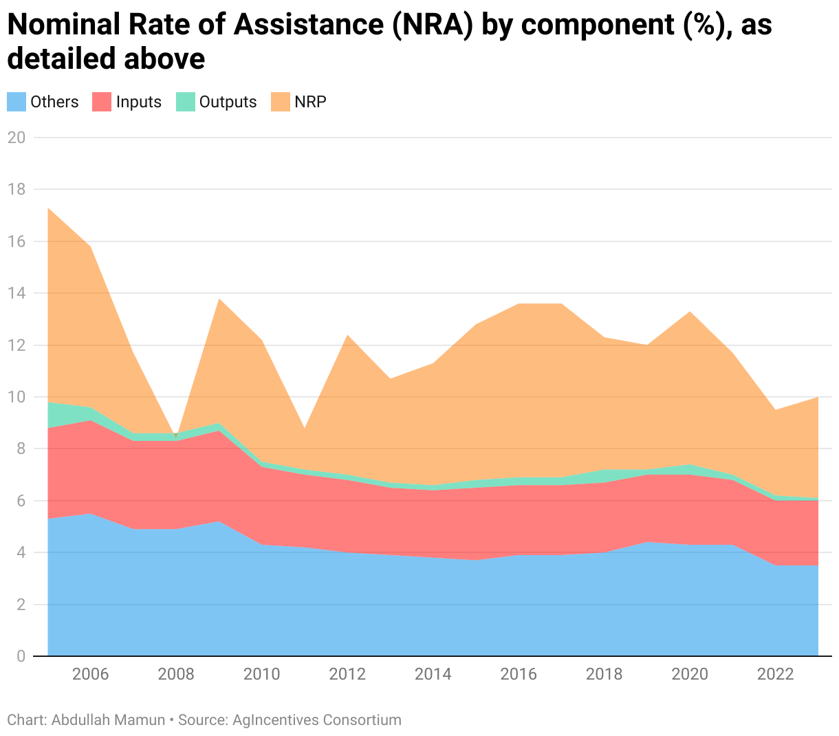 Nominal Rate of Assistance (NRA) by component (%), as detailed above