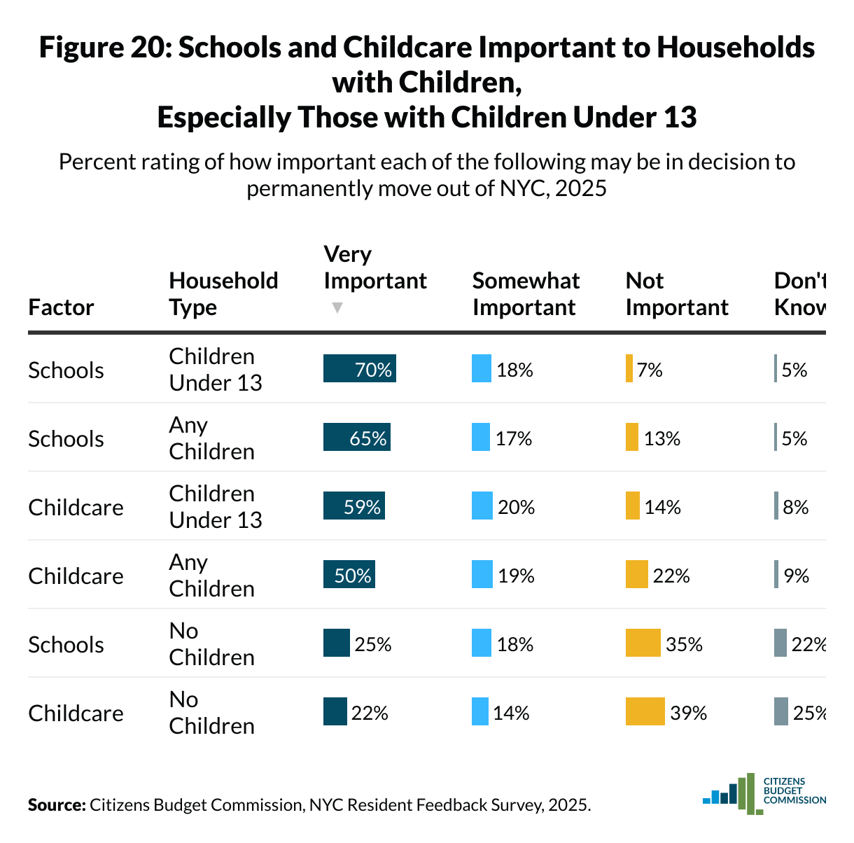 Percent rating of how important each of the following may be in decision to permanently move out of NYC, 2025