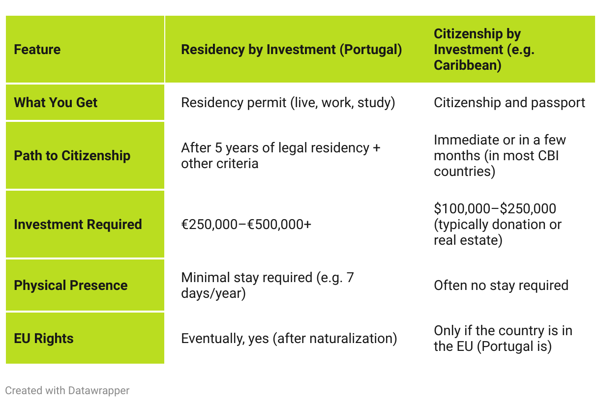 Portugal Residency vs. Citizenship by Investment