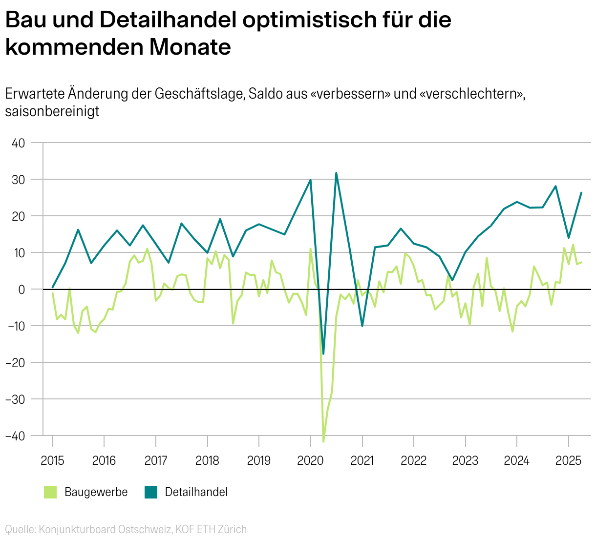 Erwartete Änderung der Geschäftslage, Saldo aus «verbessern» und «verschlechtern», saisonbereinigt