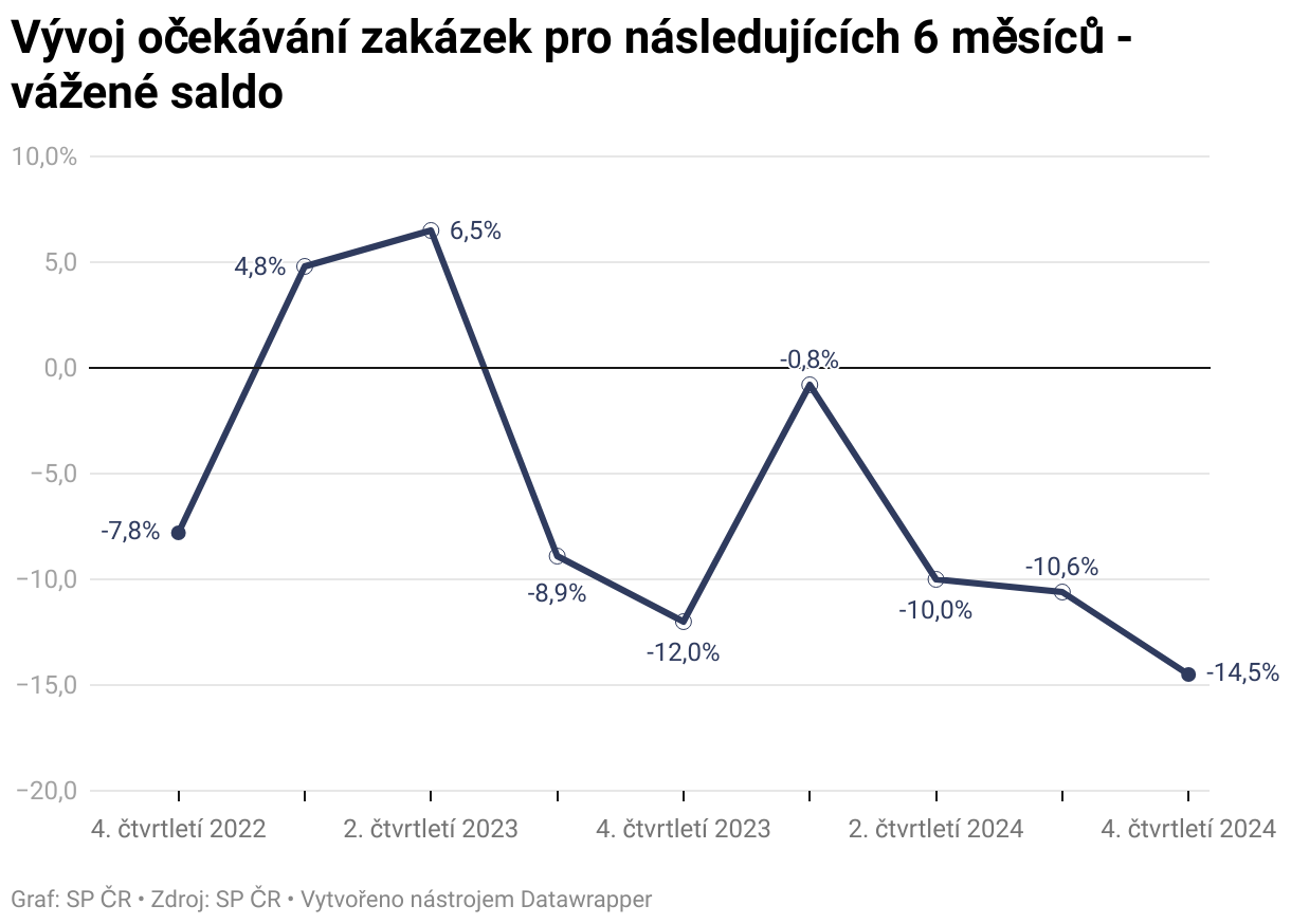 Vývoj očekávání zakázek pro následujících 6 měsíců - vážené saldo