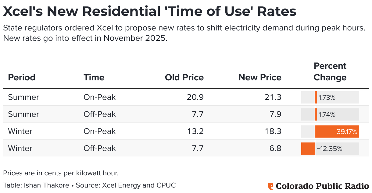 State regulators ordered Xcel to propose new rates to shift electricity demand during peak hours. New rates go into effect in November 2025.
