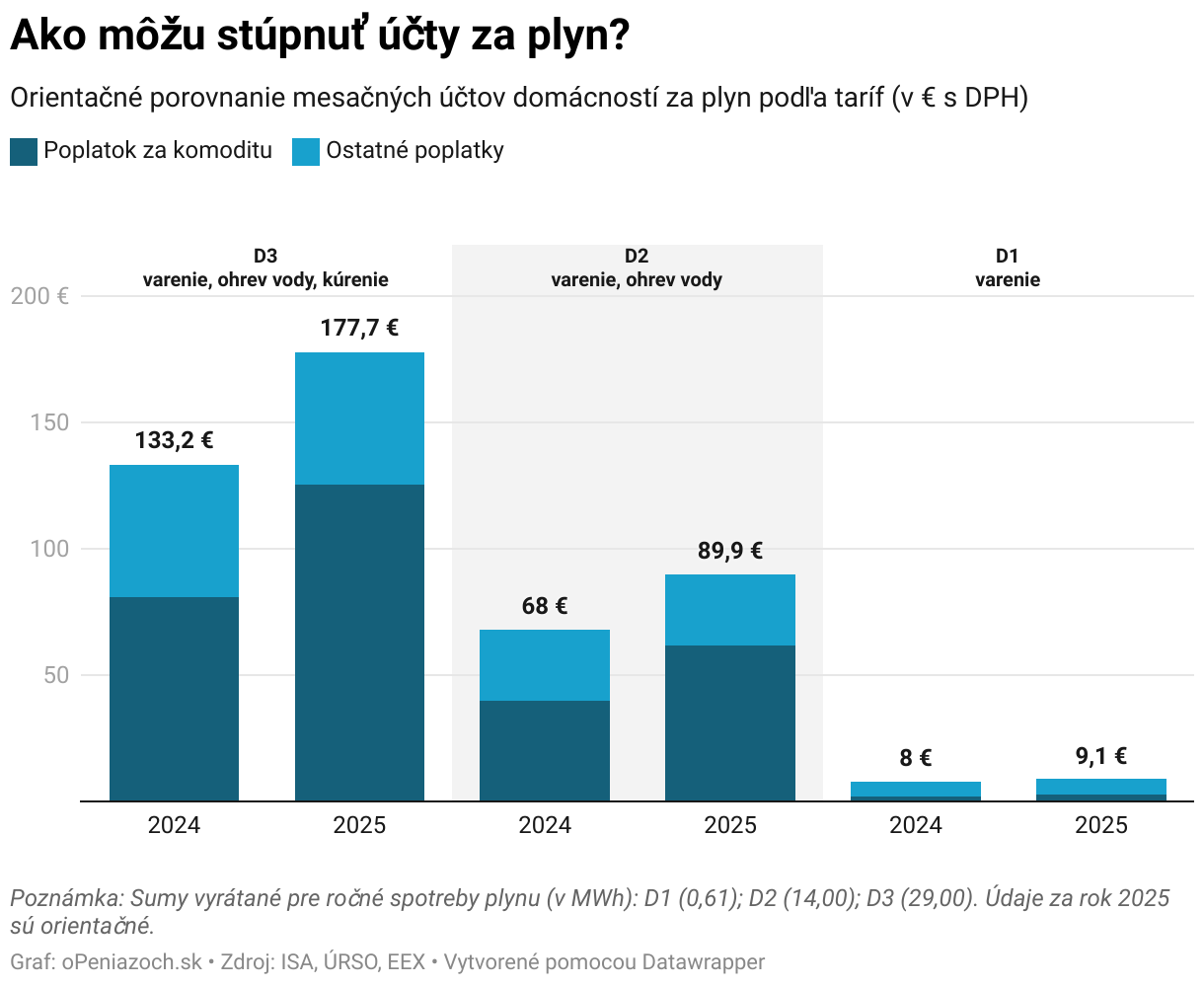 Orientačné porovnanie mesačných účtov domácností za plyn podľa taríf (v € s DPH)