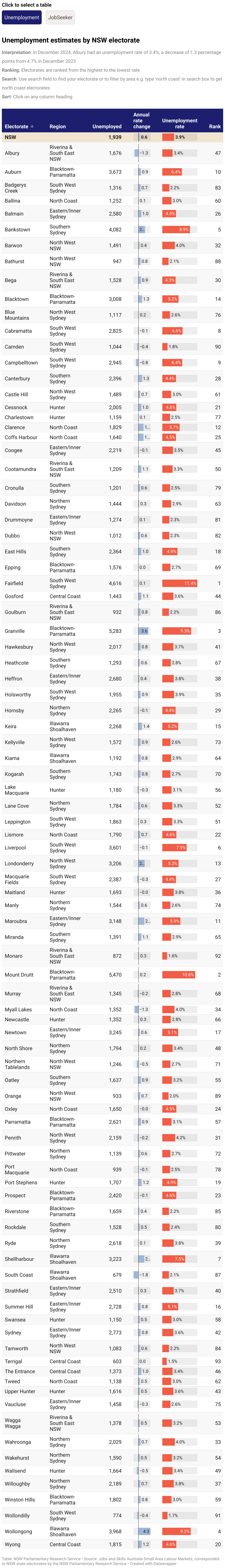 Search: Use search field to find your electorate or to filter by area e.g. type 'north coast' in search box to get north coast electorates