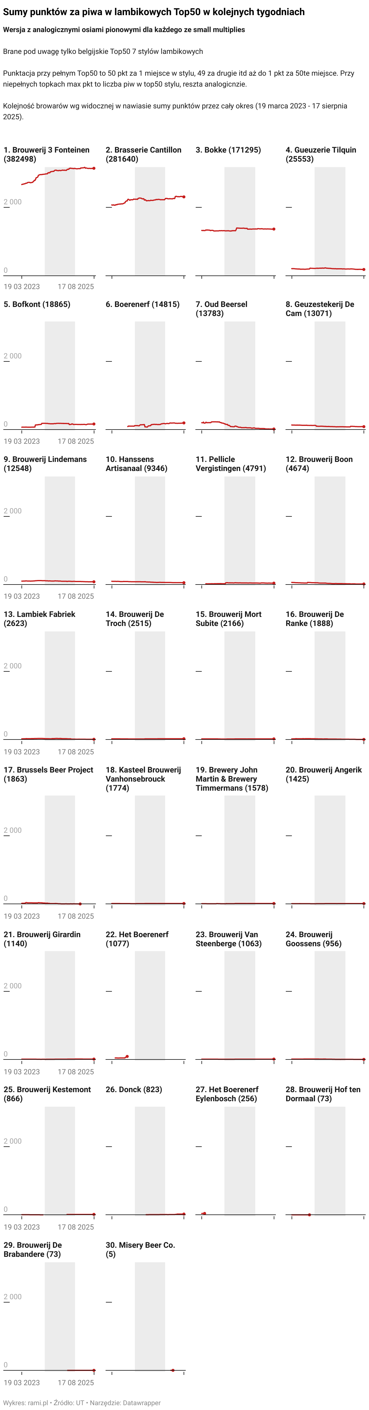 Kolejność browarów wg widocznej w nawiasie sumy punktów przez cały okres (19 marca 2023 - 17 sierpnia 2025).
