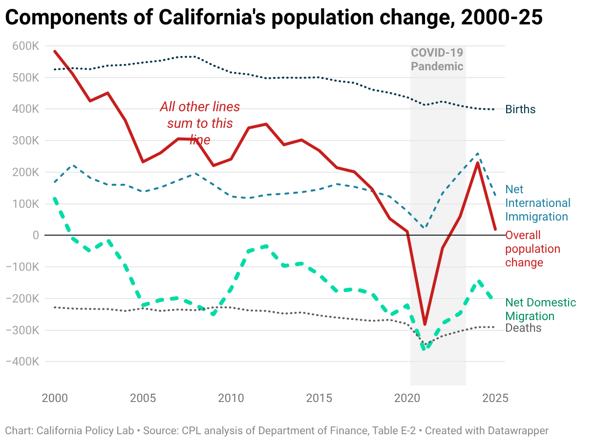 Components of California's population change, 2000-25