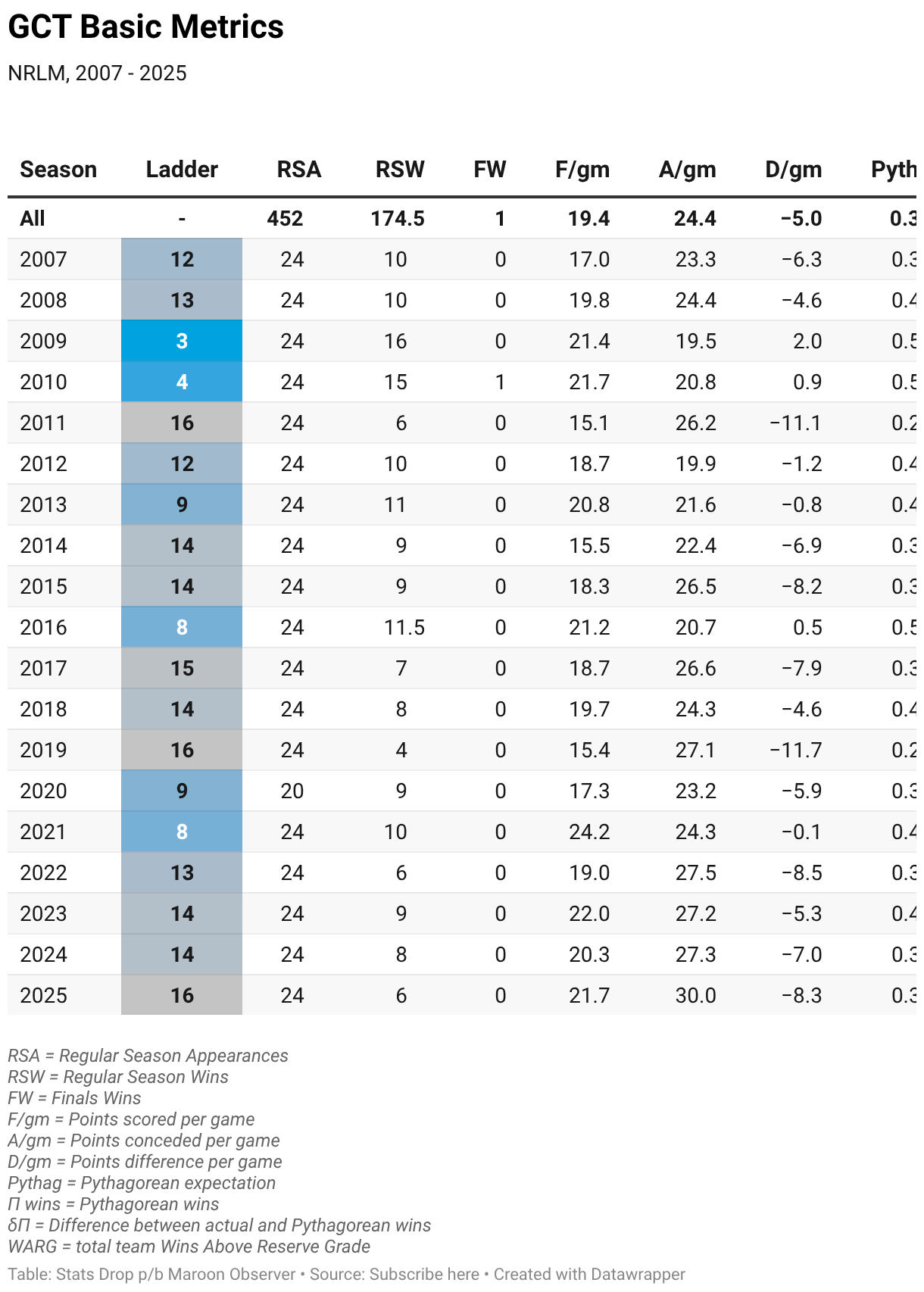 GCT Basic Metrics