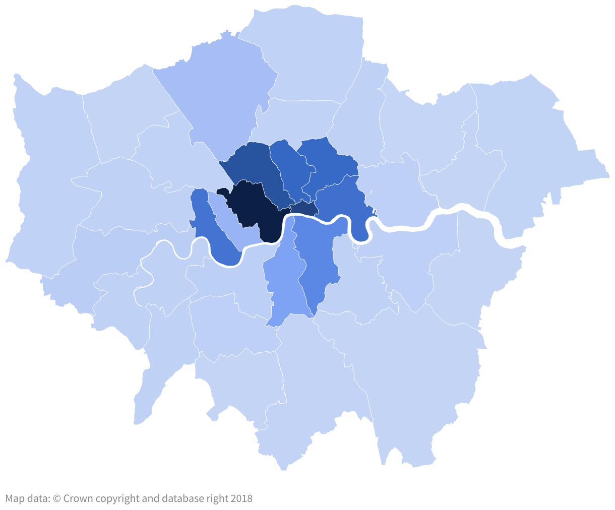 VC investment by London borough, $M