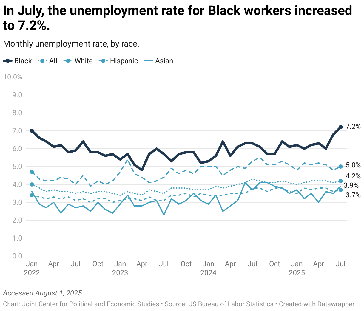 Monthly unemployment rate, by race.