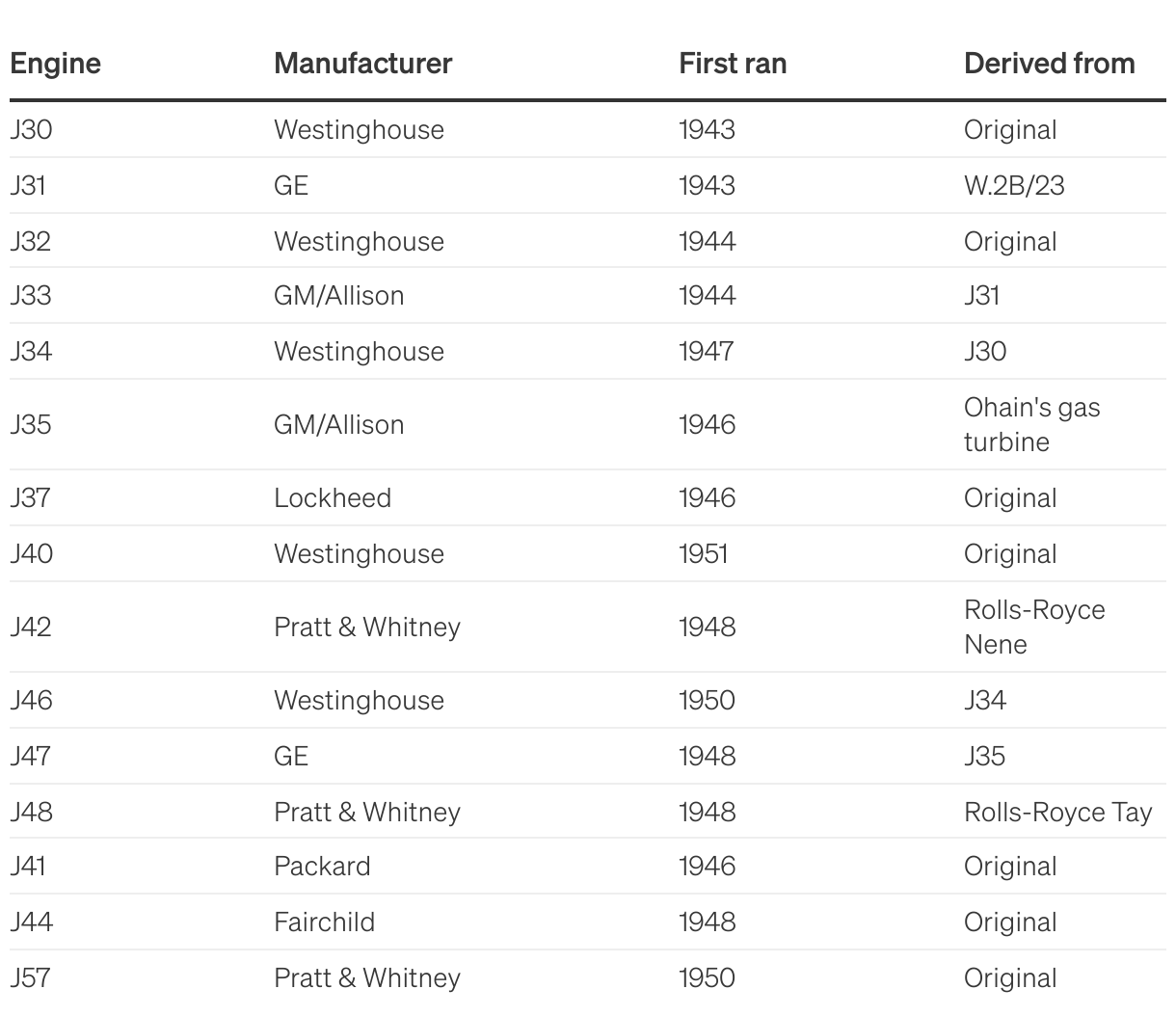 Military-funded jet engine projects between 1941 and 1950