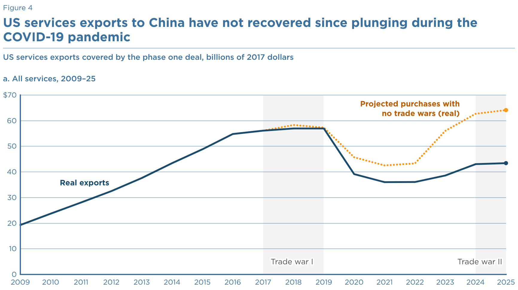 US services exports covered by the phase one deal, billions of 2017 dollars a. All services, 2009–25