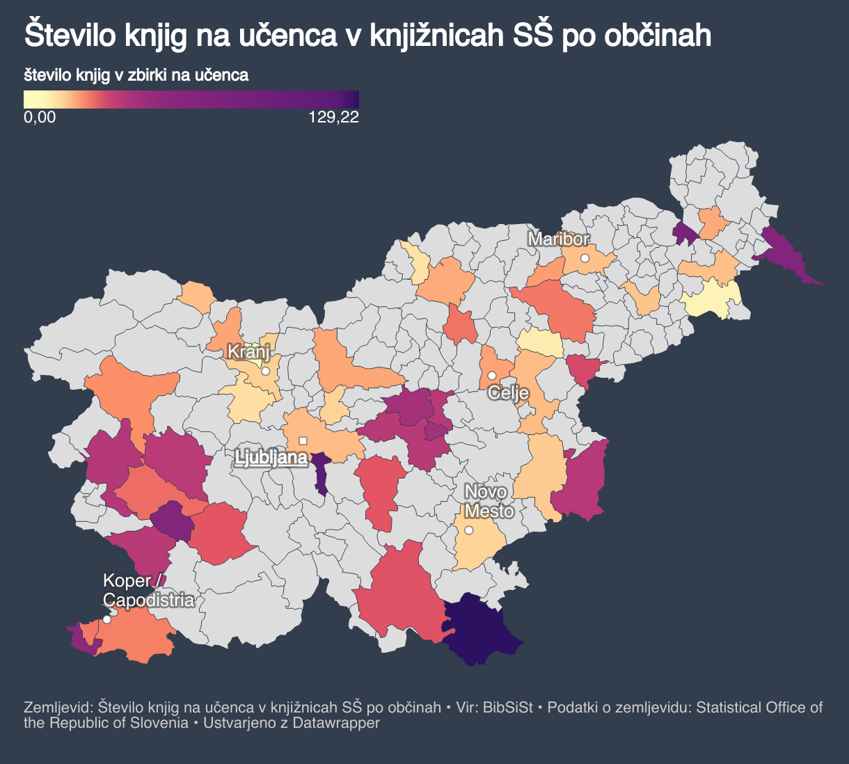 Število knjig na učenca v knjižnicah SŠ po občinah