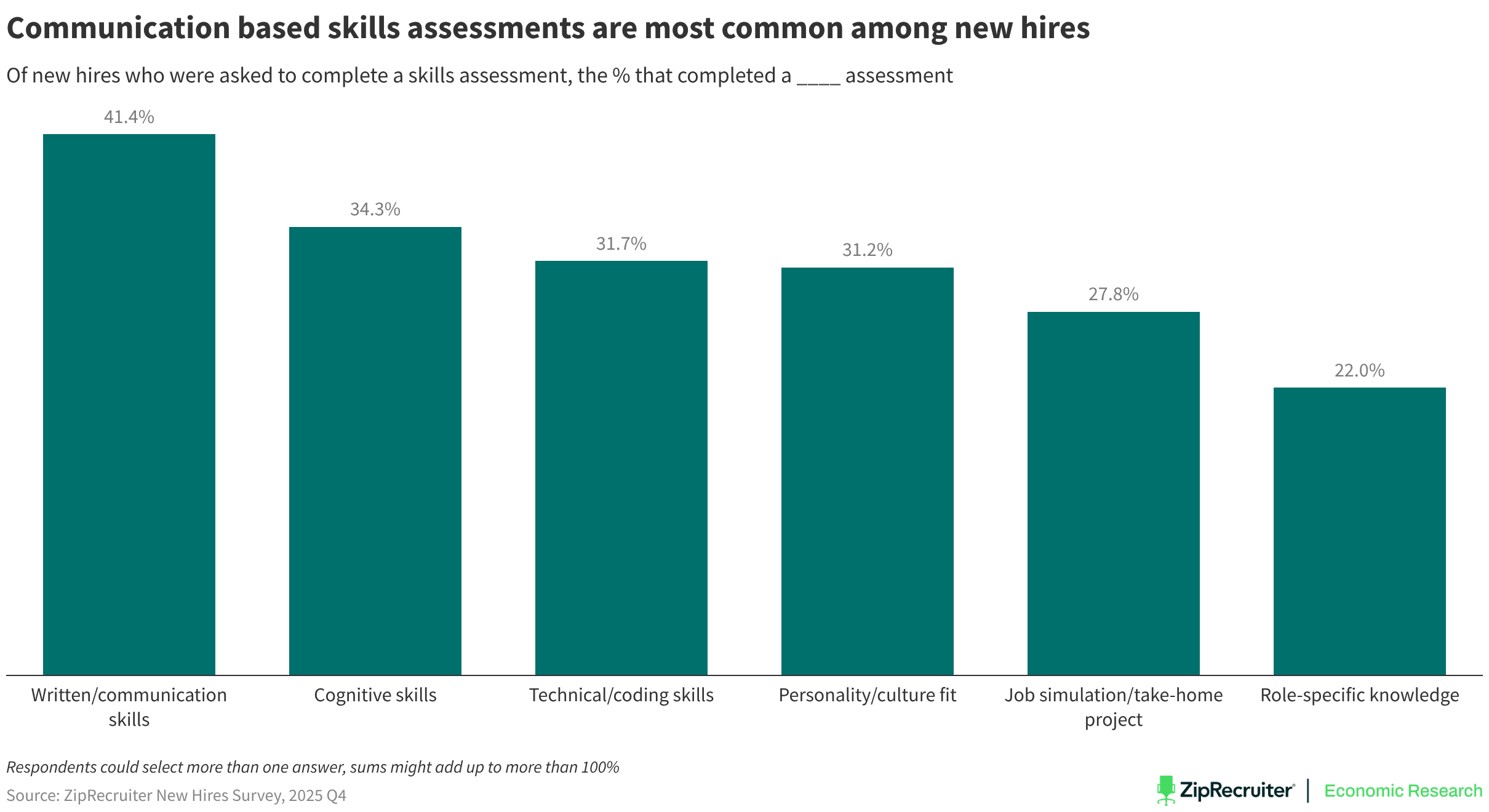 Of new hires who were asked to complete a skills assessment, the % that completed a ____ assessment