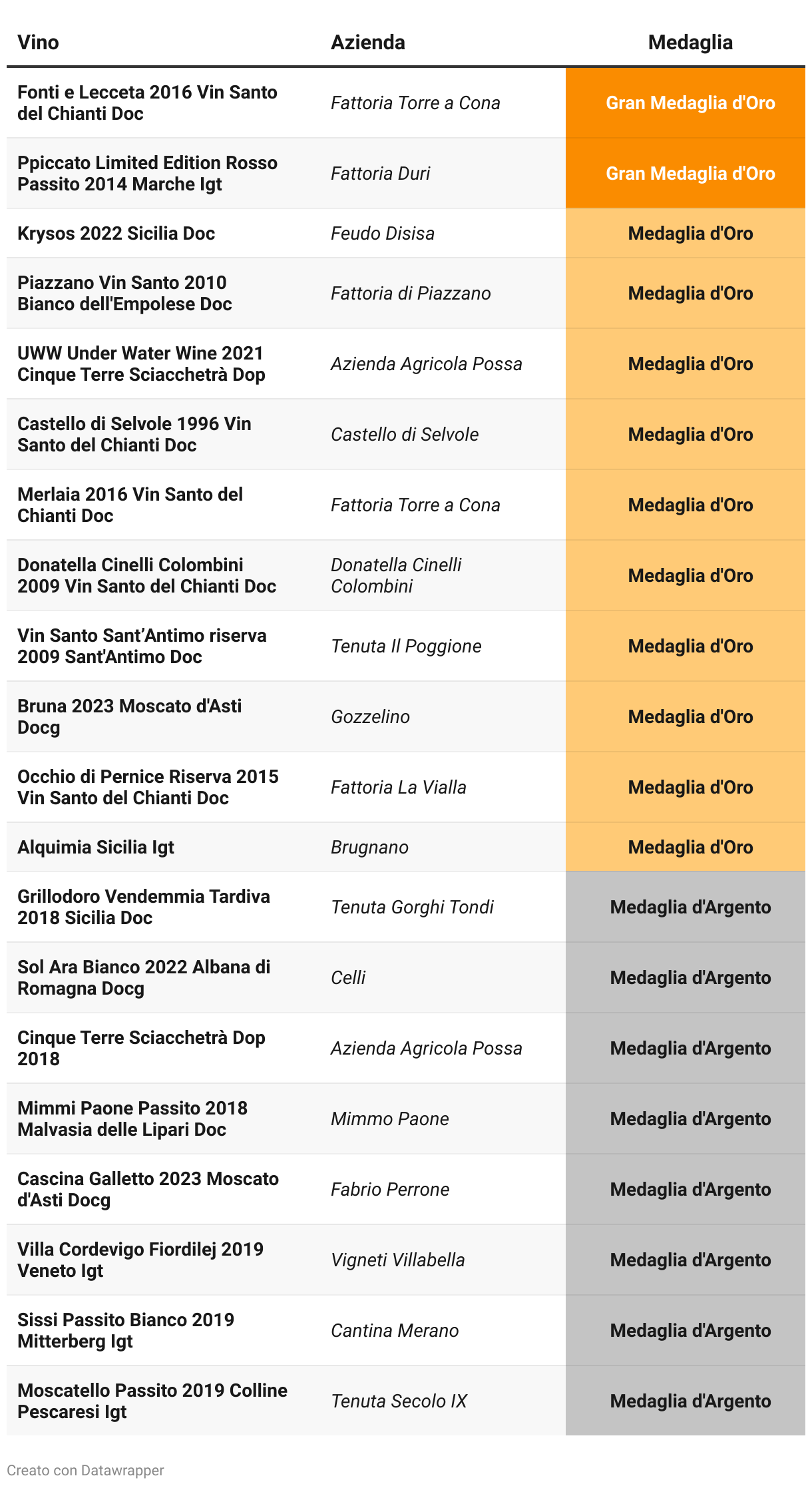CMB Sessione Vini Dolci e Fortificati - Le medaglie italiane