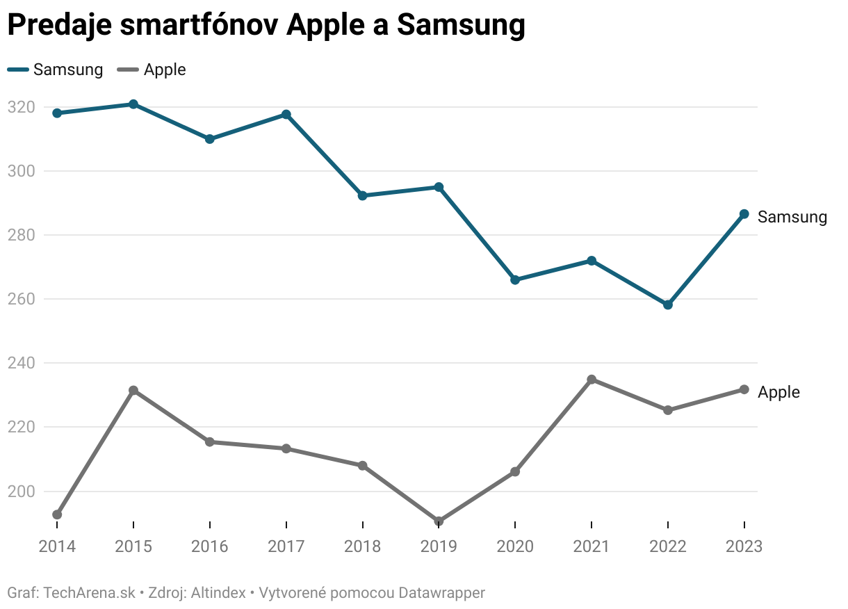 Predaje smartfónov Apple a Samsung