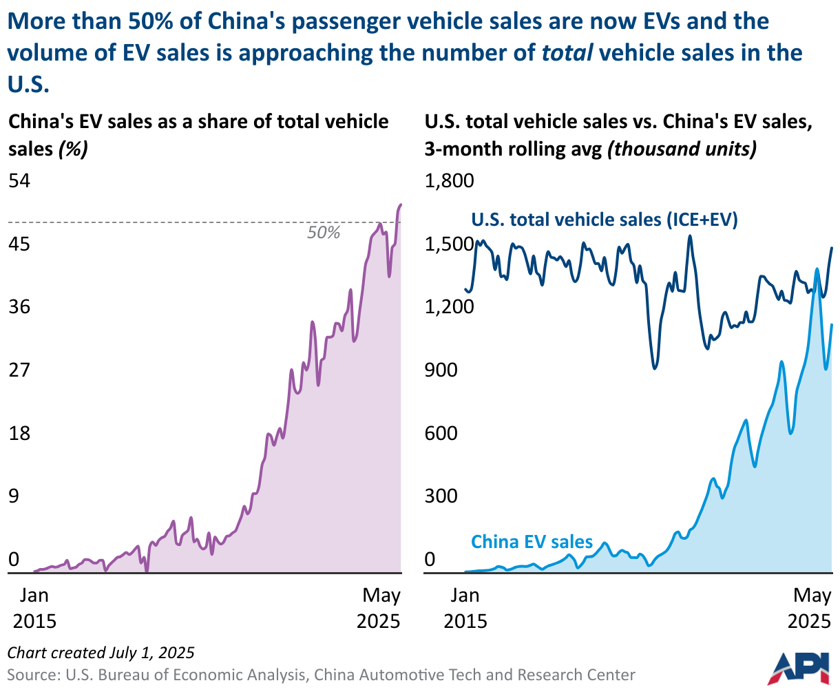 More than 50% of China's passenger vehicle sales are now EVs and the volume of EV sales is approaching the number of