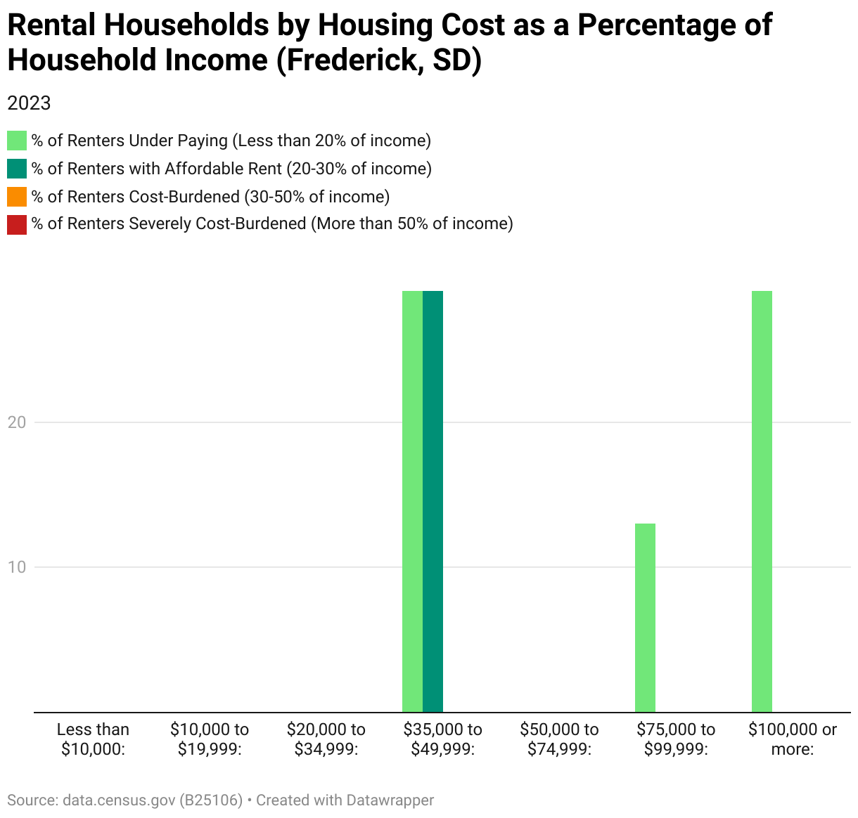 Rental Households by Housing Cost as a Percentage of Household Income (Frederick, SD)