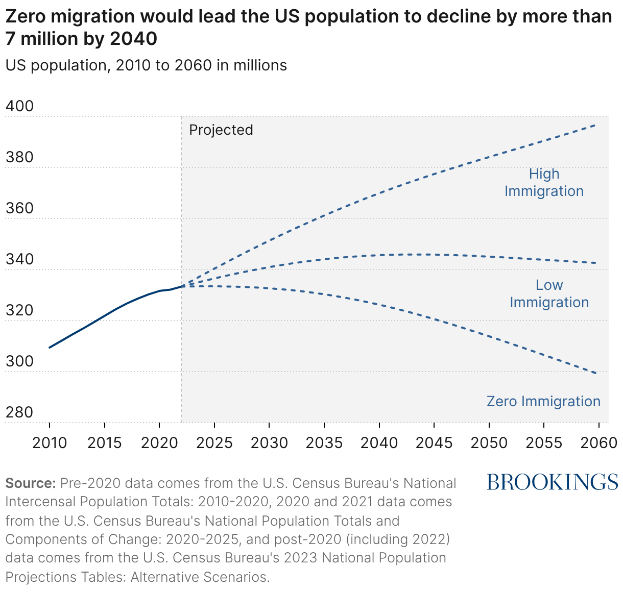 US population, 2010 to 2060 in millions