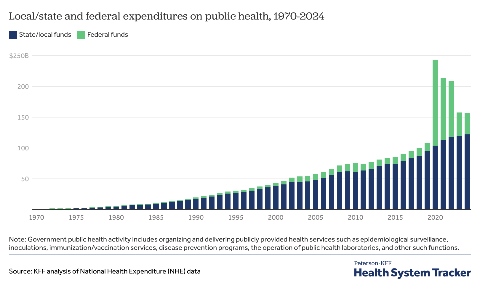 Local/state and federal expenditures on public health, 1970-2024