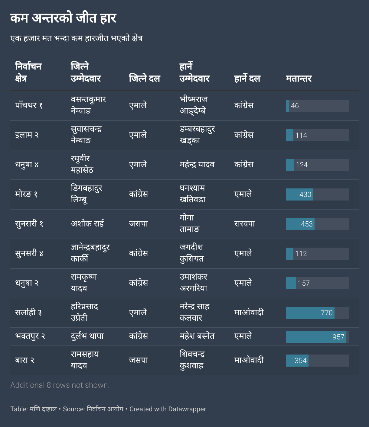 एक हजार मत भन्दा कम हारजीत भएको क्षेत्र