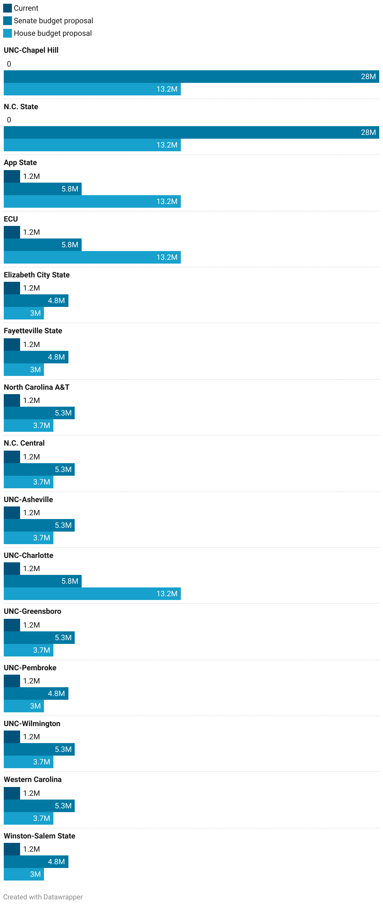 A rounded average of how much each school's athletic department would receive per year, if gambling spending grows as projected. In dollars.