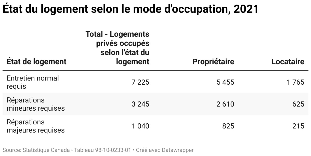État du logement selon le mode d'occupation, 2021
