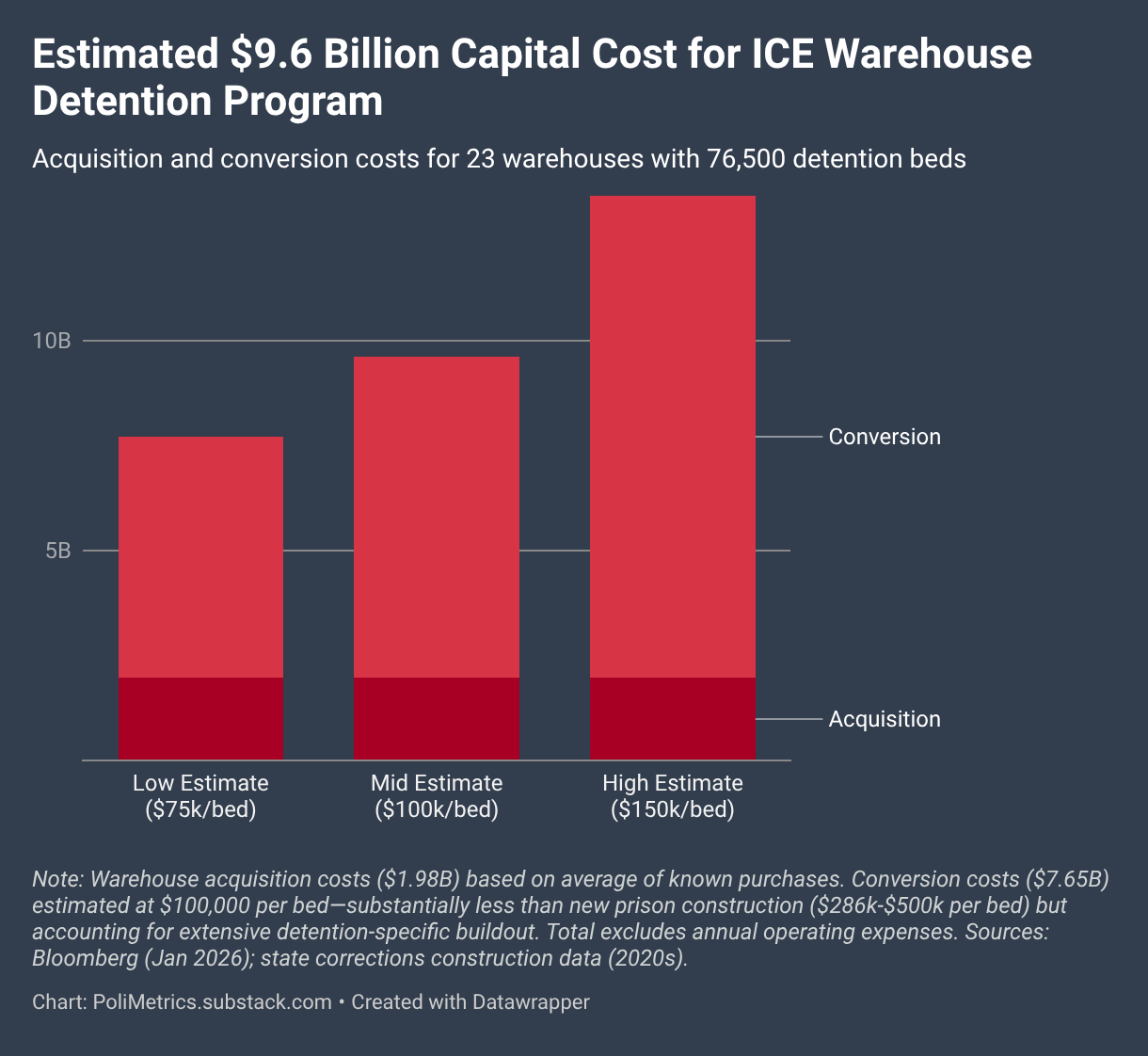 Acquisition and conversion costs for 23 warehouses with 76,500 detention beds