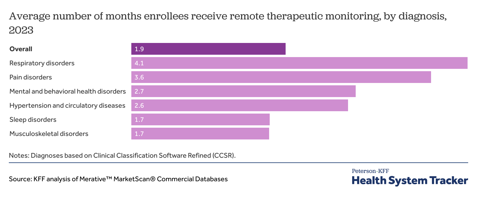 Average number of months enrollees receive remote therapeutic monitoring, by diagnosis, 2023