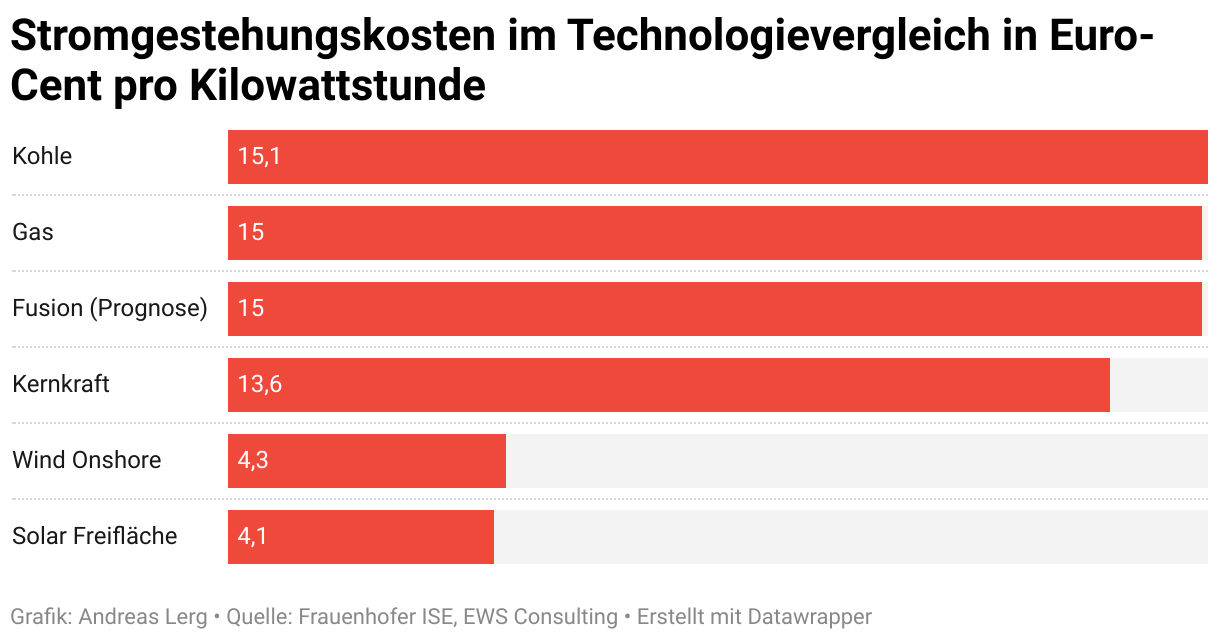 Stromgestehungskosten im Technologievergleich in Euro-Cent pro Kilowattstunde