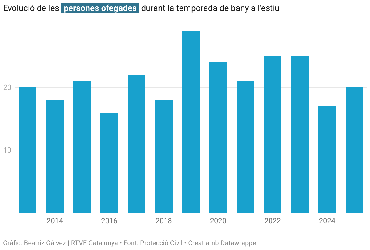 Evolució de les persones ofegades durant la temporada de bany a l'estiu
