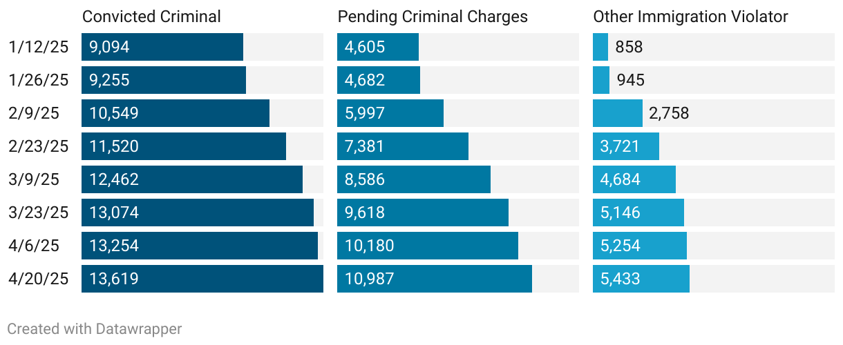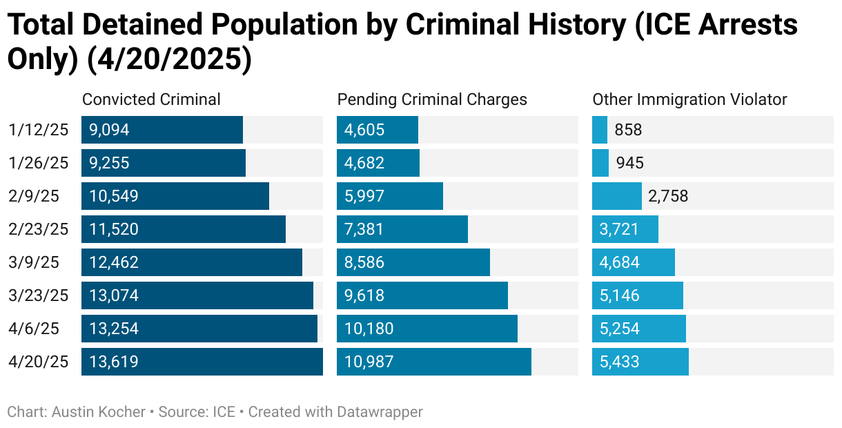 Total Detained Population by Criminal History (ICE Arrests Only) (4/20/2025)