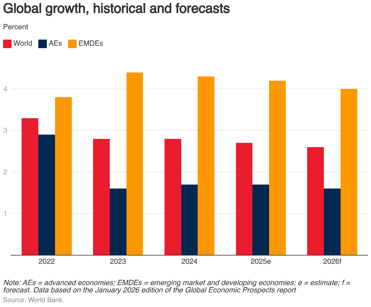 Global growth, historical and forecasts