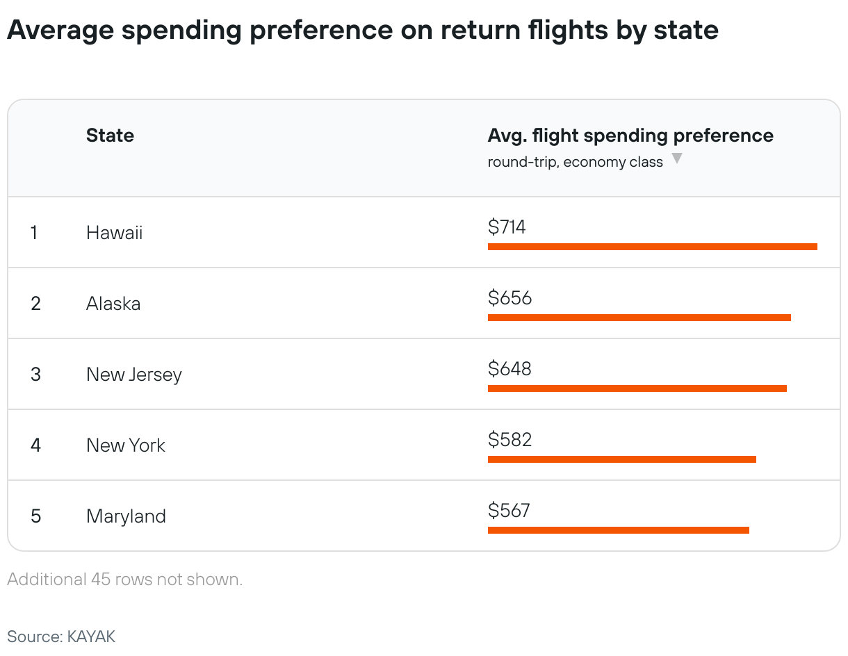 Average spending preference on return flights by state