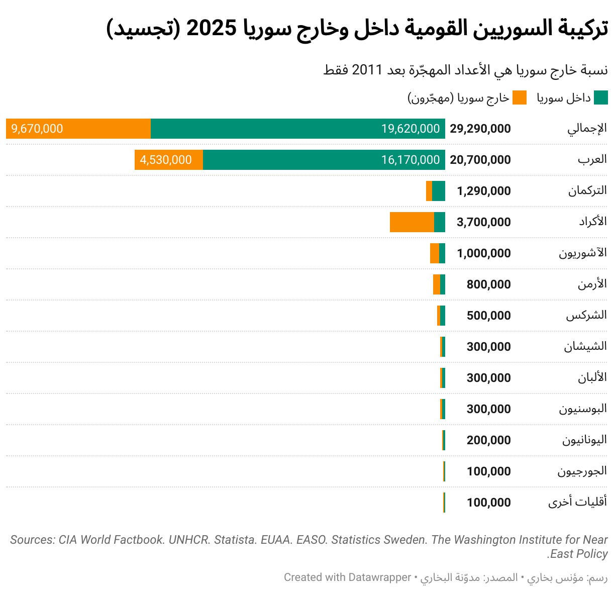 نسبة خارج سوريا هي الأعداد المهجّرة بعد 2011 فقط