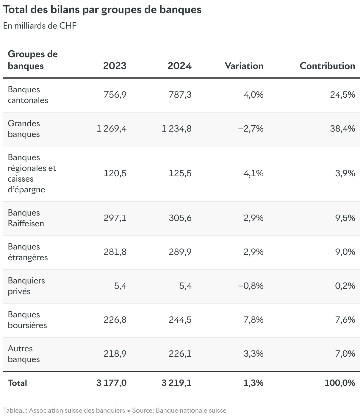 Total des bilans par groupes de banques