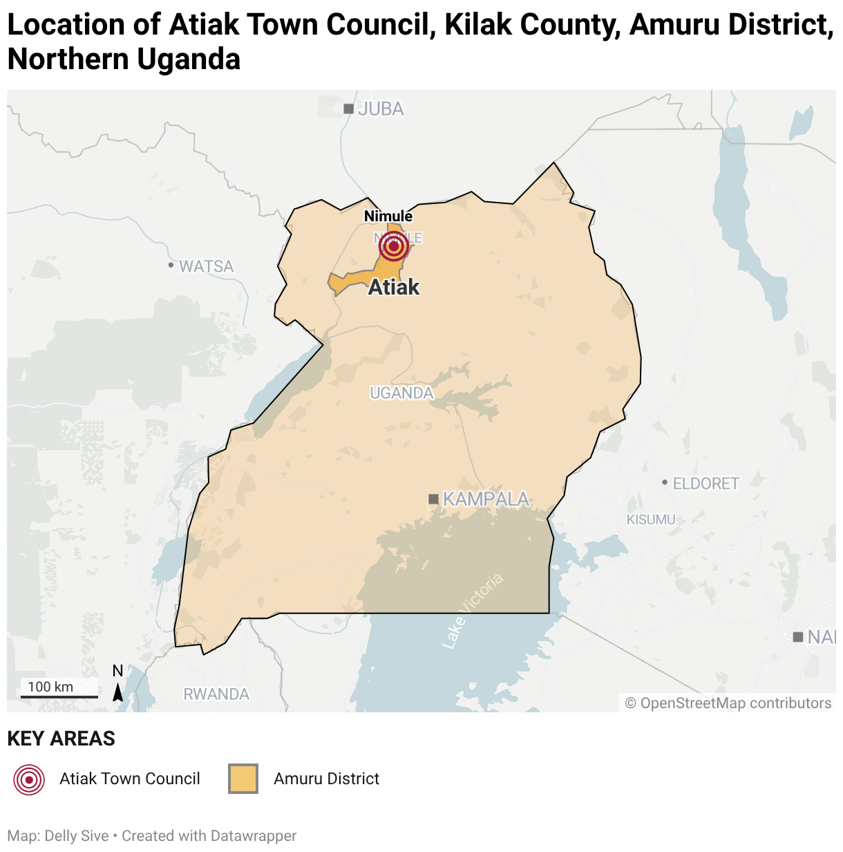 Location of Atiak Town Council, Kilak County, Amuru District, Northern Uganda