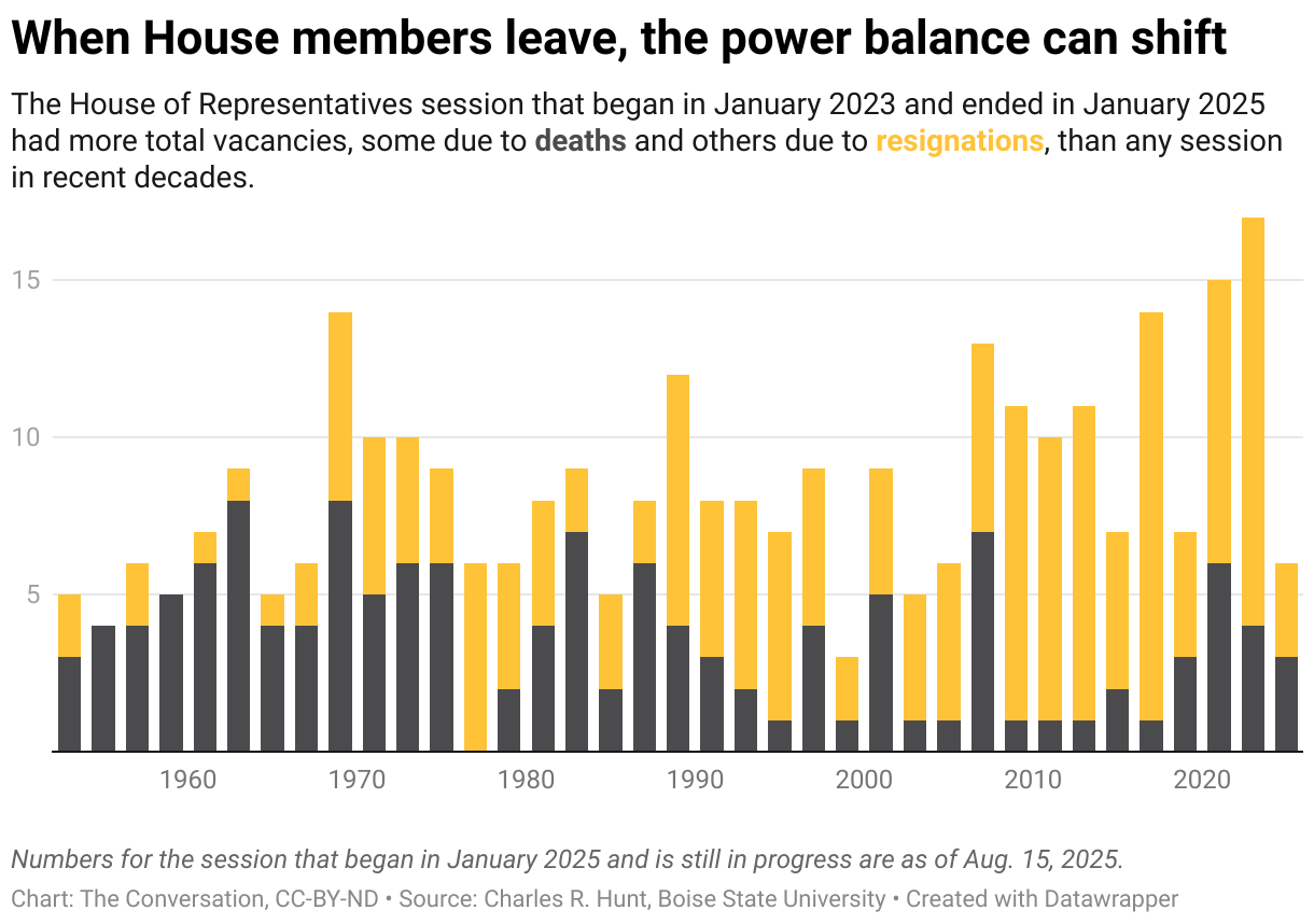 The House of Representatives session that began in January 2023 and ended in January 2025 had more total vacancies, some due to deaths and others due to resignations, than any session in recent decades.